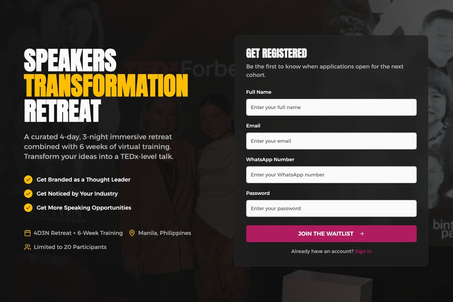 P.S. Please note - the Speakers Transformation Retreat is a paid experience, and full investment details will be shared during the webinar.