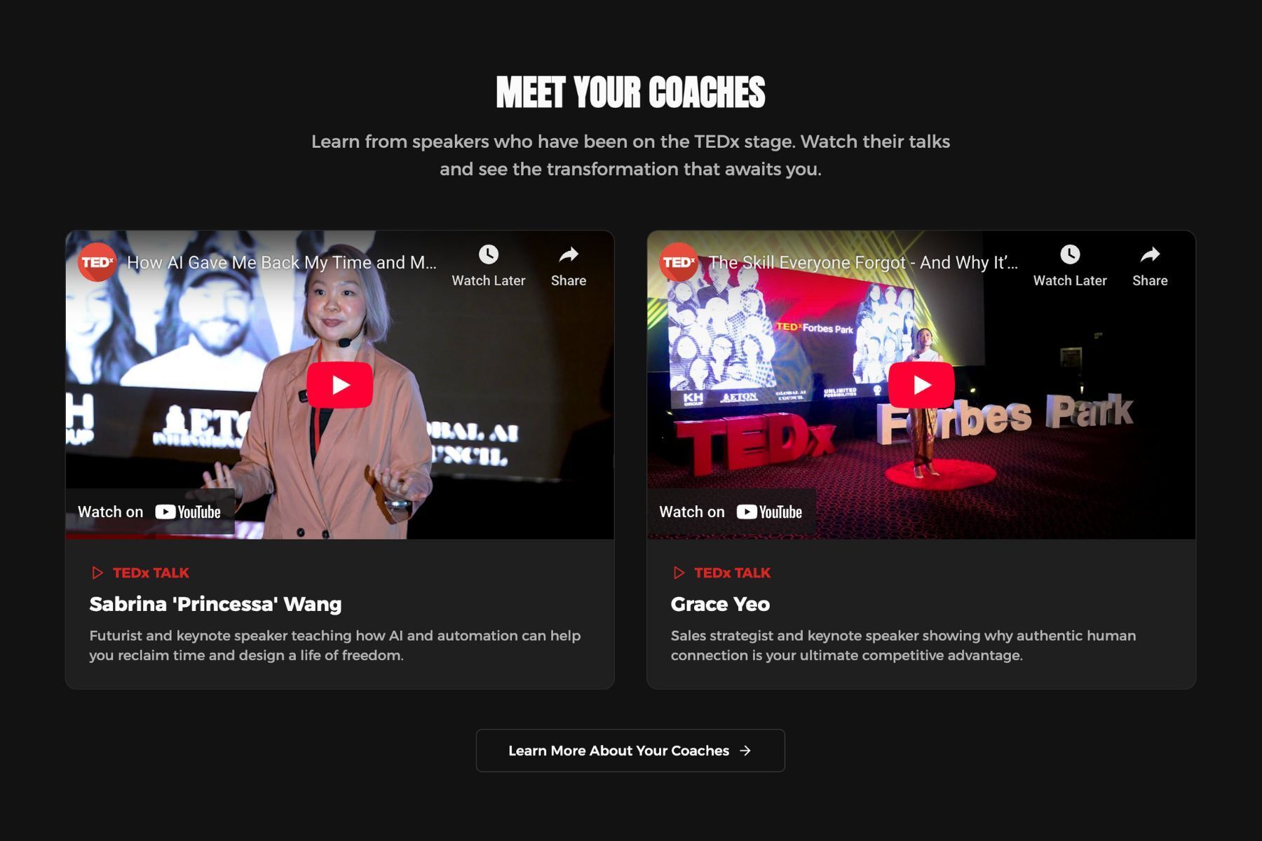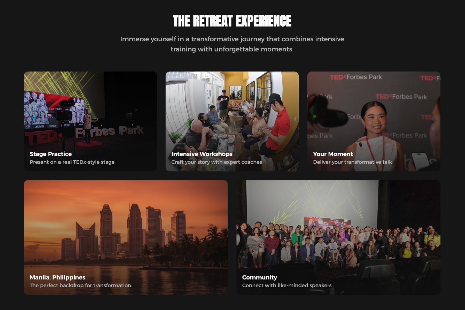 At the end, we'll share the next step - our Speakers Transformation Retreat (4D3N + 6-week virtual training), where we help participants craft the full TEDx-ready package: